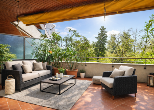 Appartement meublé rénové avec grand balcon et piscine commune sur le toît