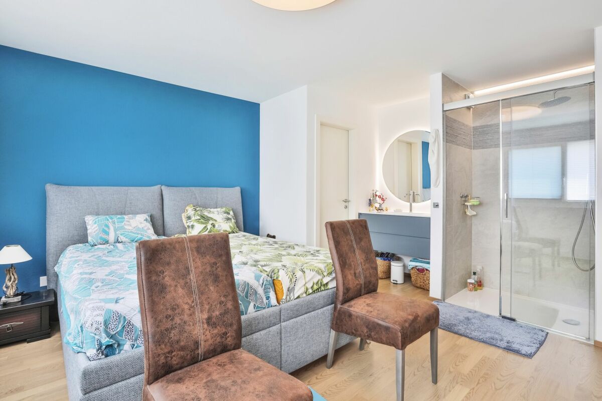 This Minergie-certified villa impresses with its modern comfort and energy efficiency, featuring underfloor heating powered by a heat pump.